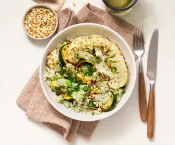 Serveer de tempeh met de rotivellen, sajoergroenten en atjar ketimoen.