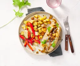 Bak 2 stuks ciabatta's de laatste 5 minuten mee op een rooster of naast de aardappeltjes in de oven.
