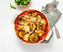 Bak de ‘moussaka’ ca. 20 minuten in de oven, of tot de bovenkant mooi goudbruin is.