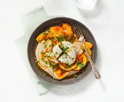 Was 400 g aardappelen en 200 g zoete aardappelen, verwijder eventueel lelijke plekjes (schillen is niet nodig) en snij in stukken van ca. 3 centimeter. Zet net onder water, voeg wat zout toe en breng afgedekt aan de kook. Kook gaar in 15 – 20 minuten.